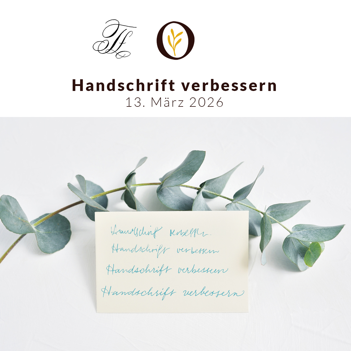 „Ich würde gerne meine Handschrift verbessern“, ist ein Satz, den wir in unseren Kalligraphie-Kursen immer wieder hören. Und auch wenn man denken würde, dass ein Kalligraphie-Workshop die eigene Handschrift verbessert, ist das nur bedingt der Fall. Es gibt jedoch ein paar Tipps und Tricks, mit denen man auch im Alltag, und mit üblichen Schreibwerkzeugen, seine Handschrift deutlich optimieren kann. Und genau darum geht’s bei unserem Workshop am Freitag, 13. März 2026.