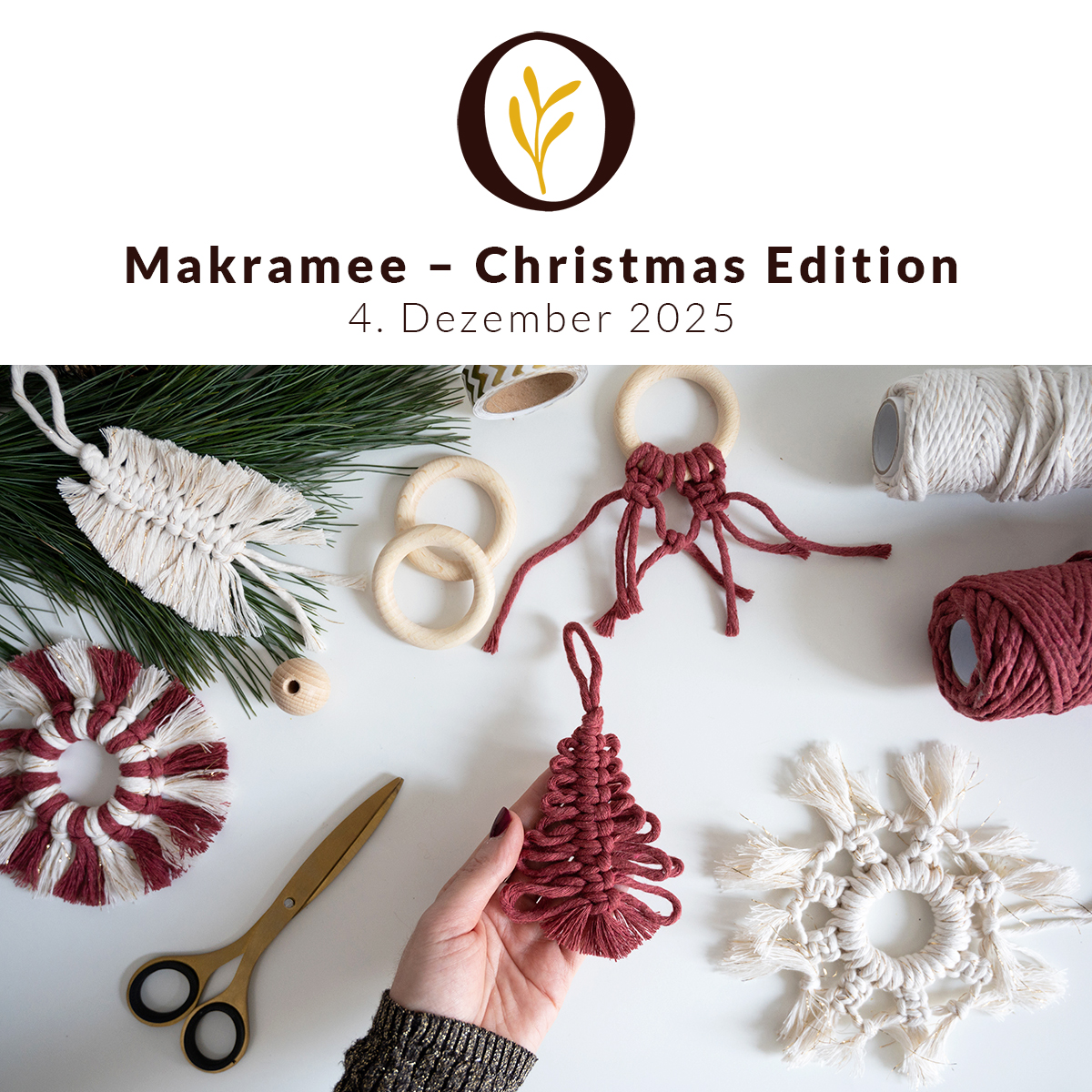 Makramee ist eine spezielle Knüpftechnik, mit der man die unterschiedlichsten Deko-Objekte, Schmuck und vieles mehr herstellen kann. Im Workshop am Donnerstag, 4. Dezember 2025 lernst du die wichtigsten Makramee-Knoten kennen und wirst vor Ort direkt kleine Projekte passend zur Weihnachtszeit knüpfen.