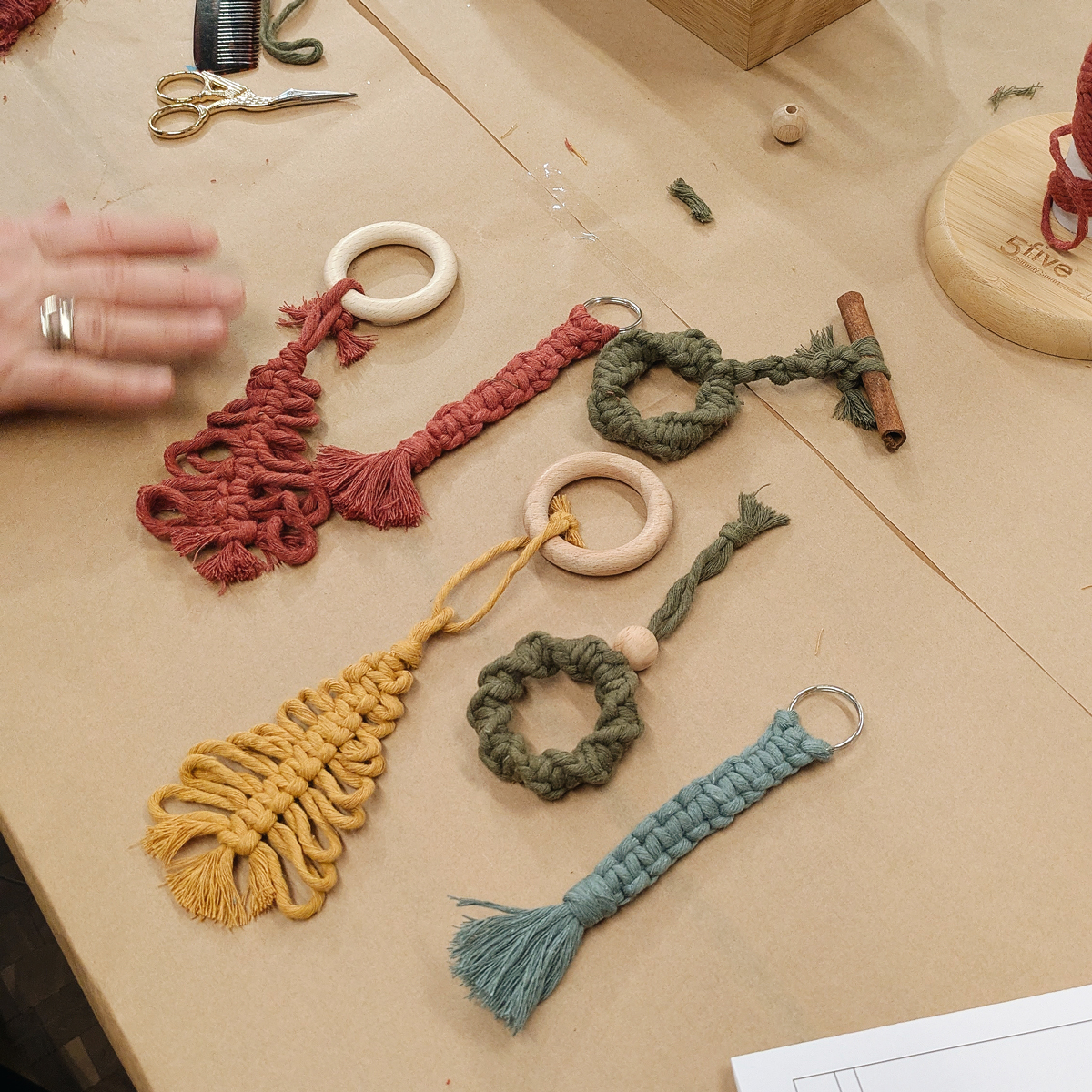 - Vor Ort werden dir alle benötigten Materialien zur Verfügung gestellt, darunter hochwertige Makramee-Garne aus recycelter Baumwolle, Zubehör aus Holz und verschiedene Deko-Objekte.